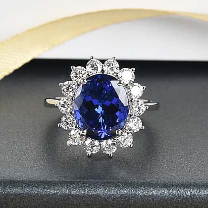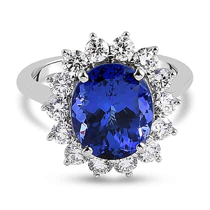 RHAPSODY 950 Platinum AAAA Tanzanite (Ovl 12x10mm) White Diamond (VS-E-F) Ring 7.00 Ct. Platinum Wt. 7.34 Gms.