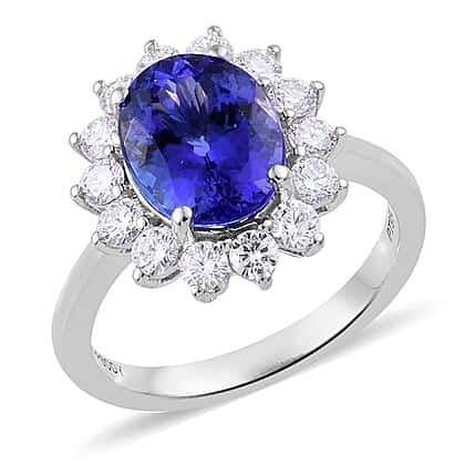 RHAPSODY 950 Platinum AAAA Tanzanite (Ovl 3.25 Ct), Diamond (VS/E-F) Ring 4.000 Ct.