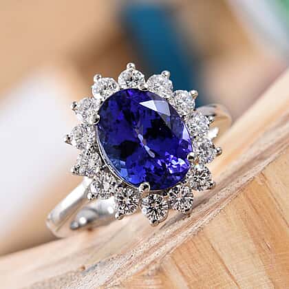 RHAPSODY 4 Carat AAAA Tanzanite and Diamond Halo Ring in 950 Platinum 6 Grams
