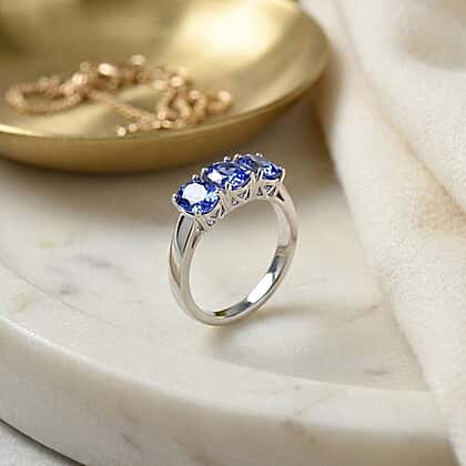 Rhapsody 950 Platinum AAAA Tanzanite Trilogy Ring 4.00 Ct, Platinum Wt. 5.00 Gms