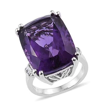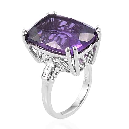 RHAPSODY 20 Carat AAAA Amethyst and Diamond Solitaire Design Ring in 950 Platinum 11 Grams