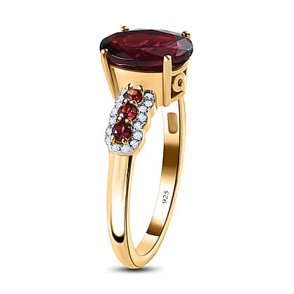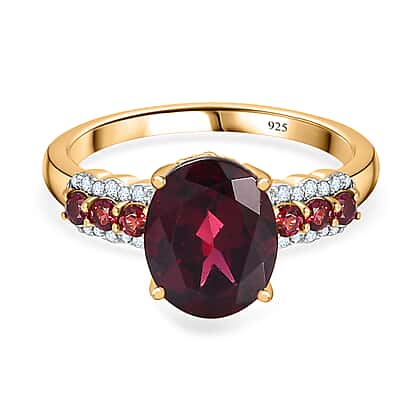 Rhodolite Garnet, Moissanite & Orissa Rose Garnet Ring in 18K Vermeil Yellow Gold Plated Sterling Silver 3.34 Ct.