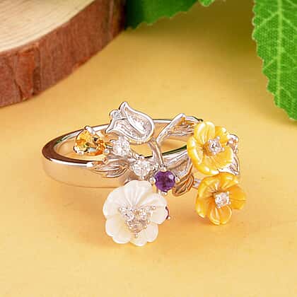 - A White MoP Flower Cut, 2 Yellow Mother of Pearl Flower Cut adorn the floral theme ring.