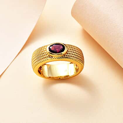Rhodolite Garnet Solitaire Ring in Yellow Gold Tone