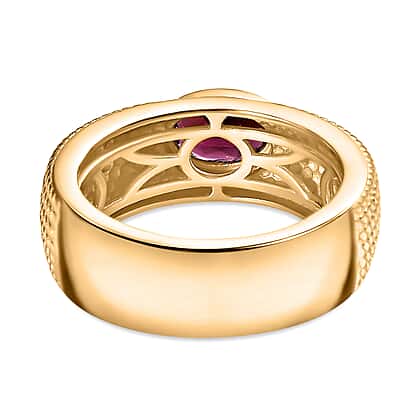 Unleash your inner radiance with this bold Rhodolite Garnet Solitaire Ring. The ring made from brass is finished in yellow gold tone to radiate luxury. Its wide band bears a textured finish and is studded with a bezel-set oval rhodolite garnet solitaire that stands out with its distinct hue. The brass construction makes it a durable piece of jewellery while the solitaire setting ensures it surpasses trends.