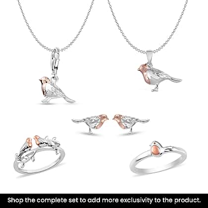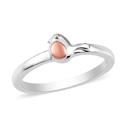 Platinum and Rose Gold Overlay Sterling Silver Robin Bird Ring