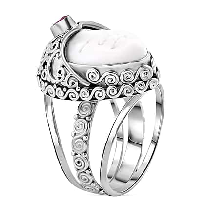 Royal Bali Princess Collection Ox Bone and Ruby Ring in Sterling Silver