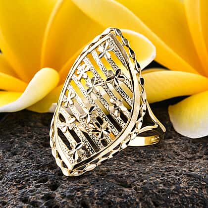 Royal Bali Collection - 9K Yellow Gold Diamond Cut Floral Ring, Gold wt 2.22 Gms