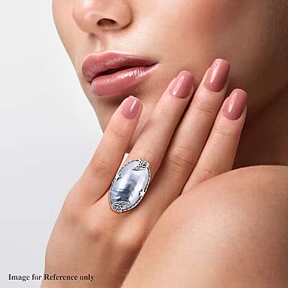 Royal Bali Collection - Blue Mabe Pearl Ring in Sterling Silver, Silver wt 7.39 Gms