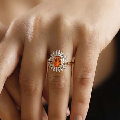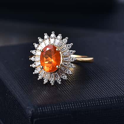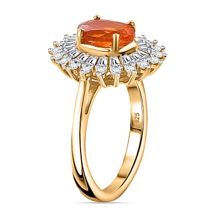 Salamanca Fire Opal & Moissanite Ring in 18K Vermeil Yellow Gold Plated Sterling Silver 1.50 Ct.