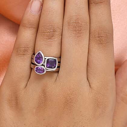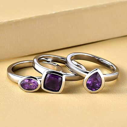 Set of 3 - African Amethyst Solitaire Ring Stainless Steel 2.000 Ct.