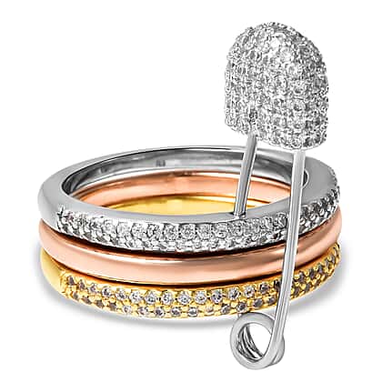 Set of 3 - Simulated Diamond Ring with Pin Hook in Tricolour Tone