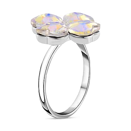 Simulated Mystic White Austrian Crystal Floral Ring