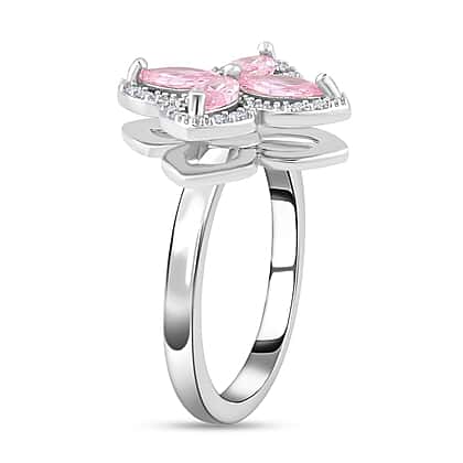 - Clover ring set with simulated pink & white diamonds