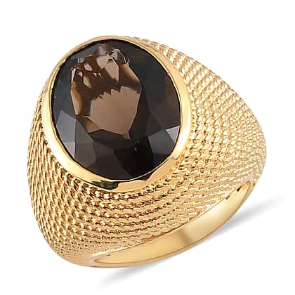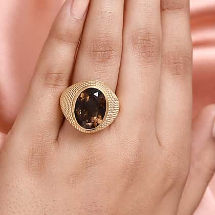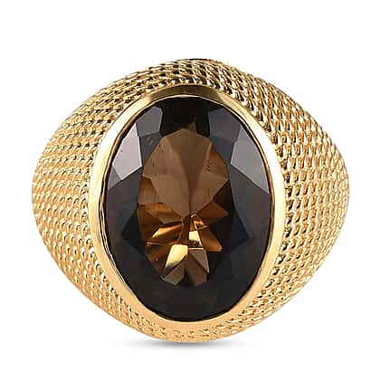 Smoky Quartz Ring in Yellow Gold Tone