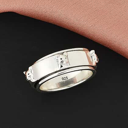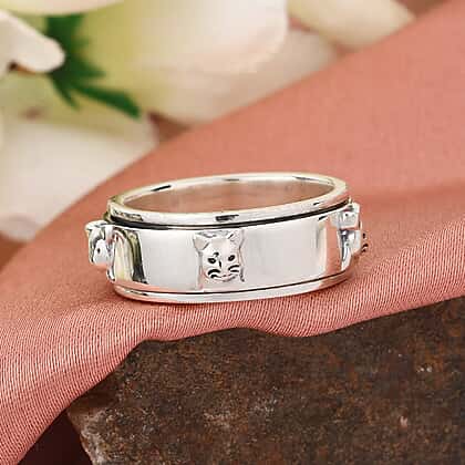 Sterling Silver Cat Spinner Ring, Silver Wt. 7.79 Gms