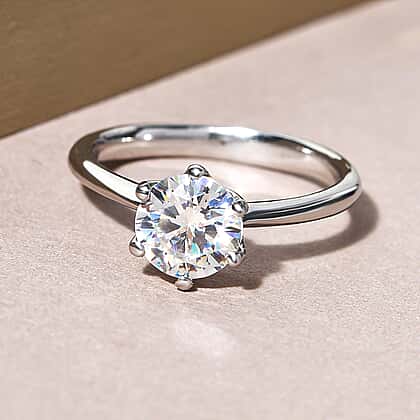 Strontium Titanate Solitaire Ring in Platinum Overlay Sterling Silver 2.00 Ct.