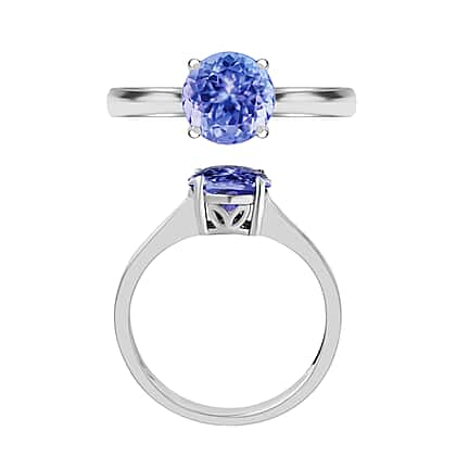 Tanzanite Solitaire Ring in Platinum Overlay Sterling Silver