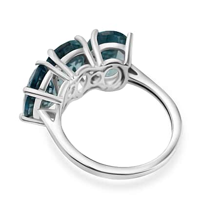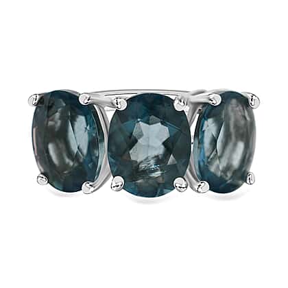 Teal Fluorite 3 Stone Ring in Rhodium Overlay Sterling Silver 6.50 Ct