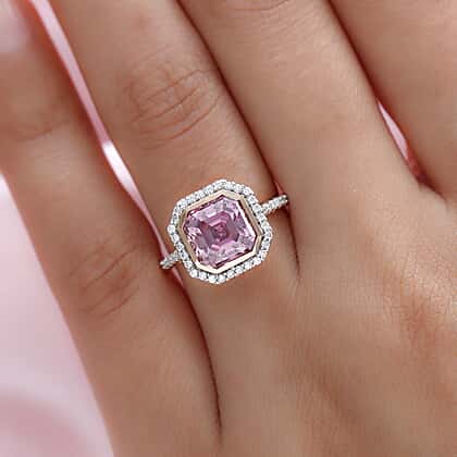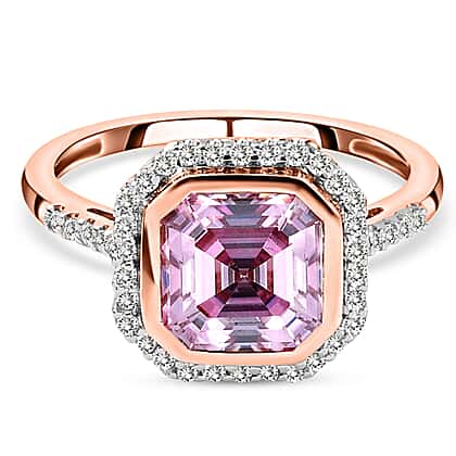 The Pink Star 9K Rose Gold Pink Moissanite (Asscher Cut) and White Moissanite Ring 3.09 Ct.