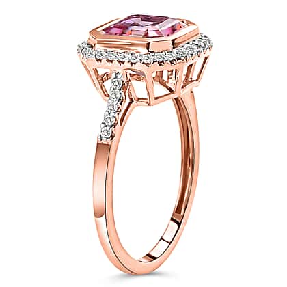 9K Rose Gold Halo Pink and White Moissanite Ring 3.09 Ct., Rose Gold Wt. 2.50 Gms