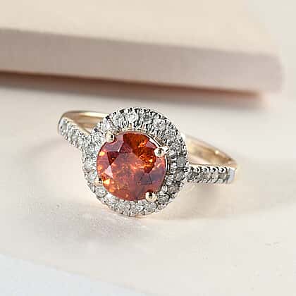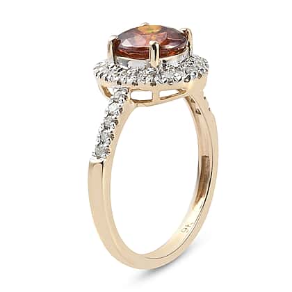 TJC Launch- 9K Yellow Gold AAA Red Sphalerite and Diamond Halo Ring 2.15 Ct.