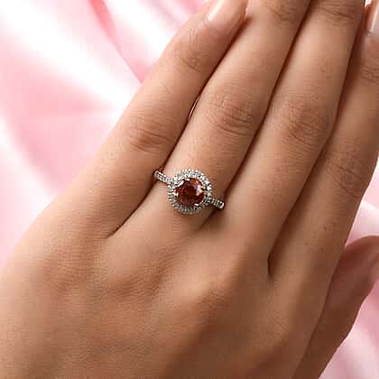 - GEMSTONE DETAILS: A round faceted cut AAA Red Sphalerite along with a number of round faceted cut Diamonds has been studded onto this ring through prongs