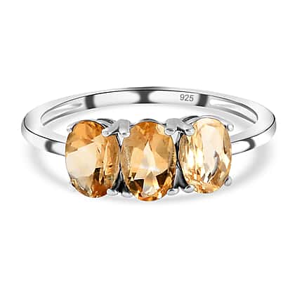 A timeless Trilogy Citrine Ring in Platinum Plated Sterling Silver with a trilogy motif that symbolises the past, present, and future. This ring features three oval faceted cut Citrine stones that are secured in place by durable prongs. Platinum plating adds a brilliant white sheen to sterling silver, enhancing its hardness and lifespan.