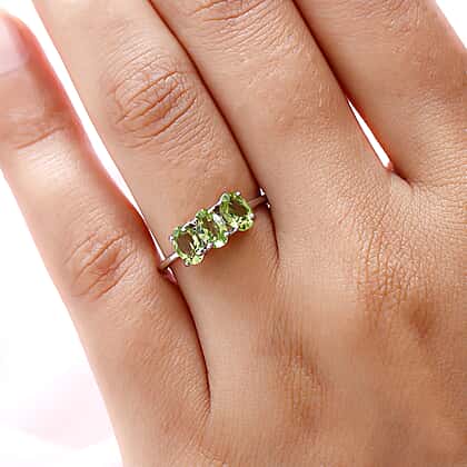 • TRILOGY DESIGN: Trilogy design is formed by three oval cut peridots accented using four prong setting to symbolise the past, present and future of the wearer