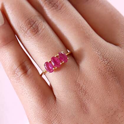 Channel power and royalty with a three-stone African amethyst ring. This trilogy ring is embellished with oval-cut gemstones exhibiting light lavender to deep purple hues. Crafted in sterling silver, this ring makes for a show-stopping pick. It symbolises the past, present, and future of a relationship. This ring also makes for birthstone jewellery for those born in February. It is also believed to reduce stress and bring calmness in life.