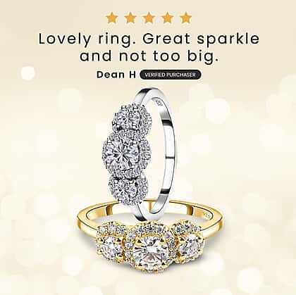 • The sleek band of this Triple Sparkle Moissanite Halo ring ensures comfortable wear for long hours.