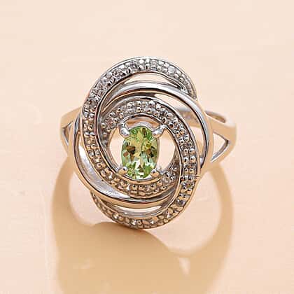 Tsavorite Garnet and Natural Zircon Ring in Platinum Overlay Sterling Silver 1.10 Ct.