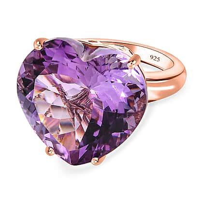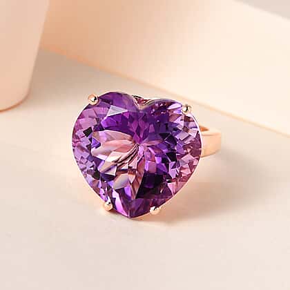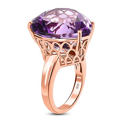 Rose De France Amethyst Solitaire Ring 18K Rose Gold Vermeil Plated Sterling Silver 20.31 Ct,