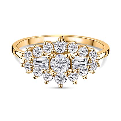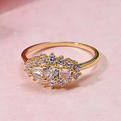 White Cubic Zirconia Boat Ring in Yellow Gold Plated Sterling Silver 1.41 ct.