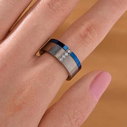 White Cubic Zirconia Ring in Dual Tone Pure Natural Tungsten Carbide