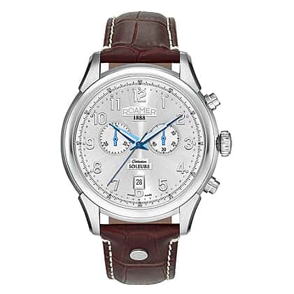 ROAMER Swiss Movement Water Resistant Watch in Stainless Steel with Chronograph Display and Brown Colour Strap