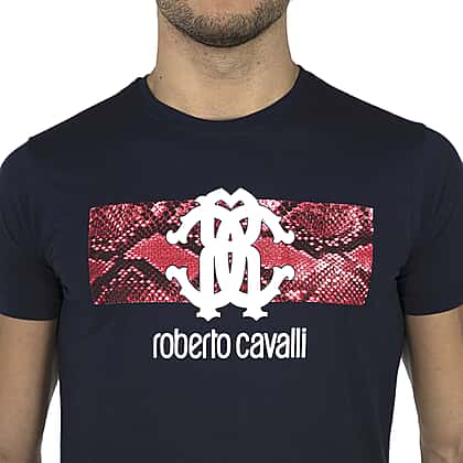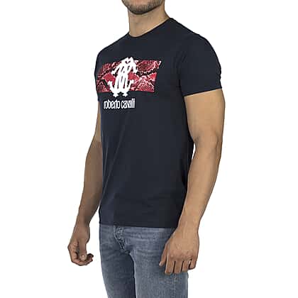 Roberto Cavalli Crew Neck Short Sleeve T-Shirt in Navy