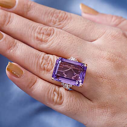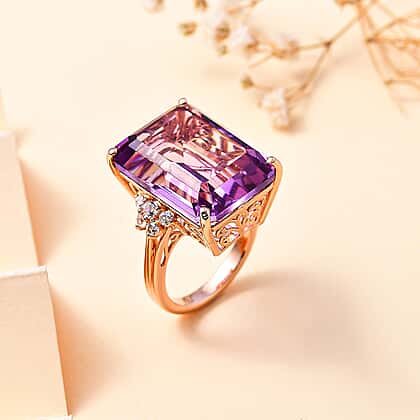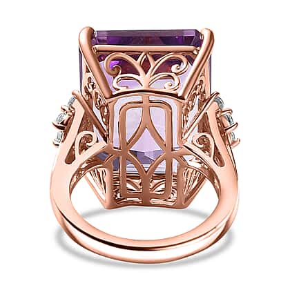 Rose De France Amethyst and Natural Zircon Ring in 18K Rose Gold Vermeil Plated Sterling Silver 24.37 Ct, Silver Wt.5.72 Gms