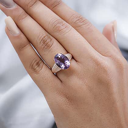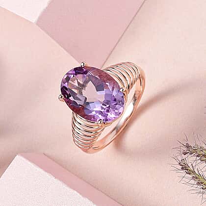 Rose De France Amethyst Ring in 18K Vermeil Rose Gold Plated Sterling Silver 5.38 Ct.