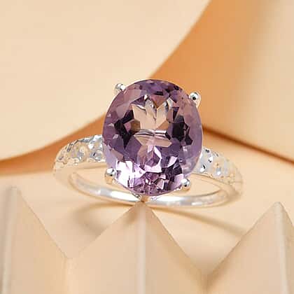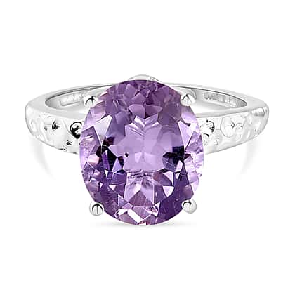 Rose De France Amethyst Solitaire Ring in Sterling Silver 4.67 Ct.