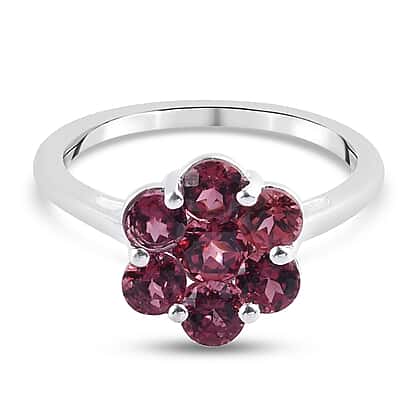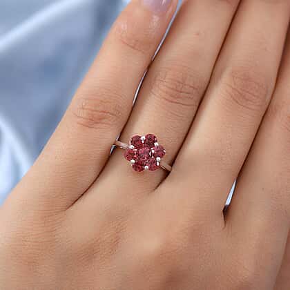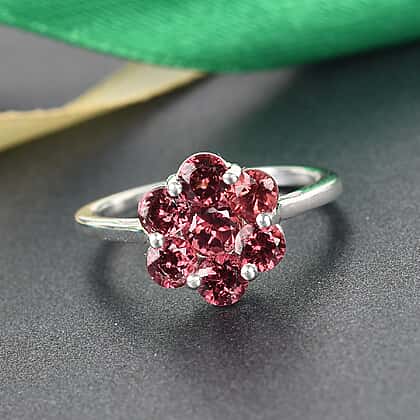Rose Garnet Floral Cluster Ring in Sterling Silver 1.75 Ct.