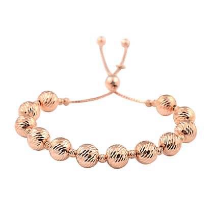 Rose Gold Overlay Sterling Silver Adjustable Beads Bracelet (Size 6.5-8.0), Silver wt 11.73 Gms
