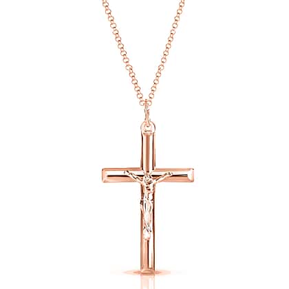 Rose Gold Overlay Sterling Silver Cross Pendant with Chain (Size 18)