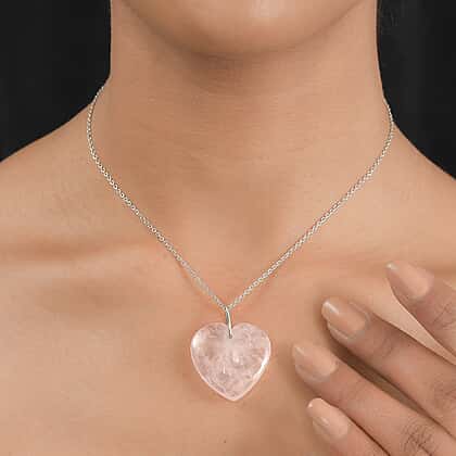 Rose Quartz Pendant in Rhodium Overlay Sterling Silver 45.000 Ct