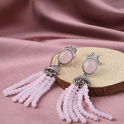 Rose Quartz and Simulated Rose Quartz Beads Earrings in Stainless Steel 26.00 Ct.