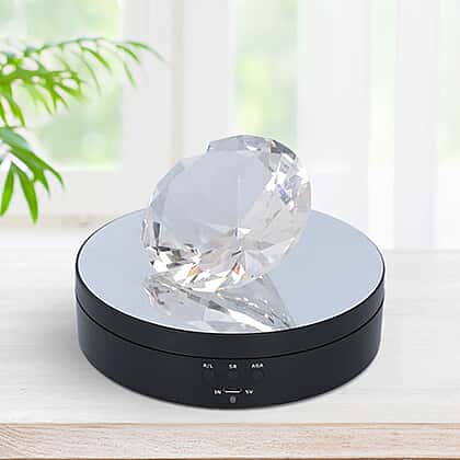 Rotating Display Stand with Black & Transparent Colour Crystal Glass (3xAAA Battery not Included) (Size 13x3.5cm)