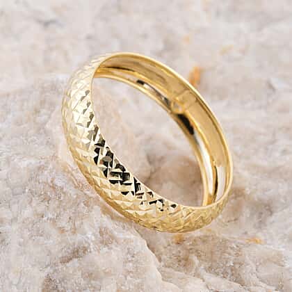 - DESIGN: A Diamond cut band ring that wears a tag of extraordinary through its criss-cross textured pattern and glorious yellow gold shimmer