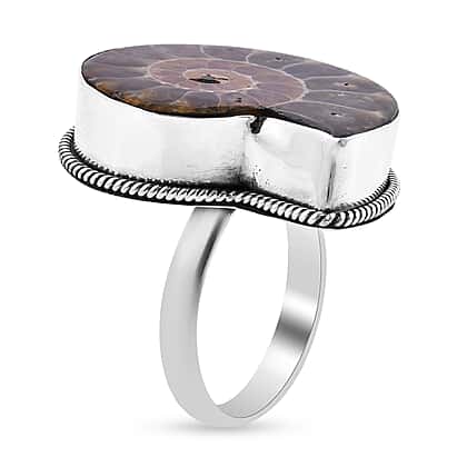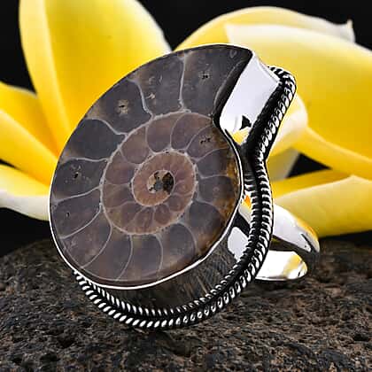 - Don a bold and chunky look with this ring that is decked with a fossilised Ammonite at its head