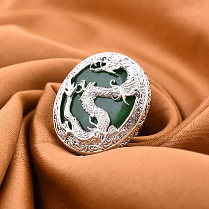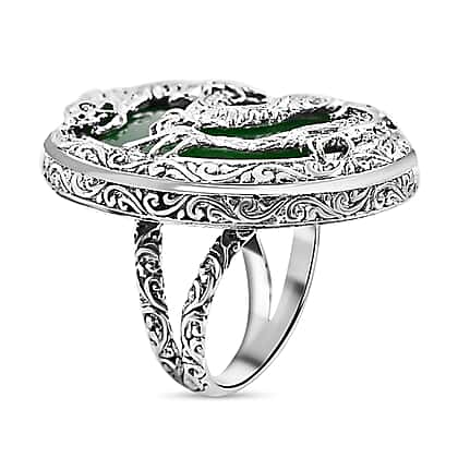 Royal Bali Collection - Green Jade Dragon Ring in Sterling Silver 20.00 Ct, Silver Wt. 14.47 Gms