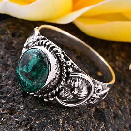 Royal Bali Collection 3.110 Ct. Azurite Malachite Matrix Floral Detailed Sterling Silver Ring